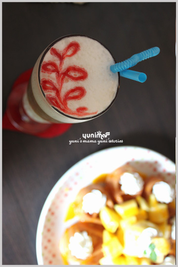 除了可愛的擺飾之外..初次見面的當季水果鬆餅..外表看起來也相當可口...