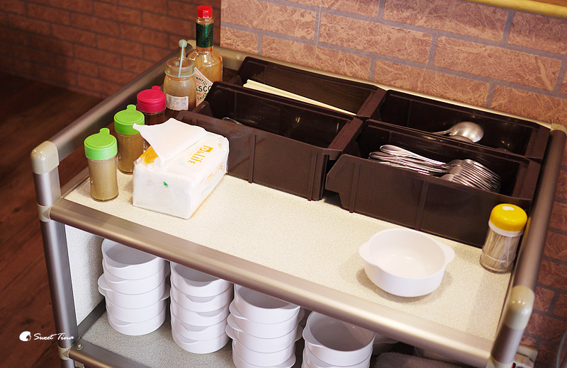 餐具及調味料也放在一旁,可以自行拿取。
