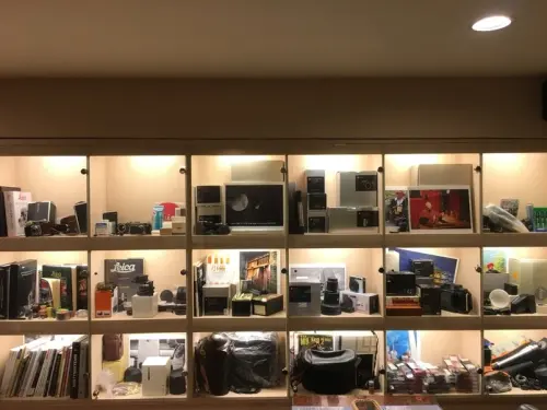 走到咖啡館的最裡頭,這裡的裝潢擺設全是以徠卡相機為主題,復古式的皮椅也頗吸引寶小銘的目光。