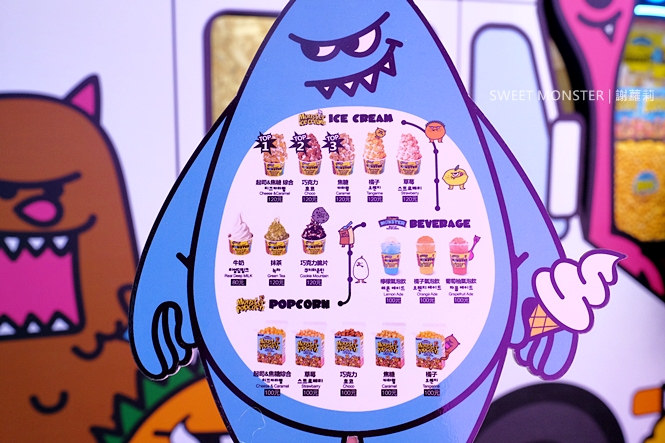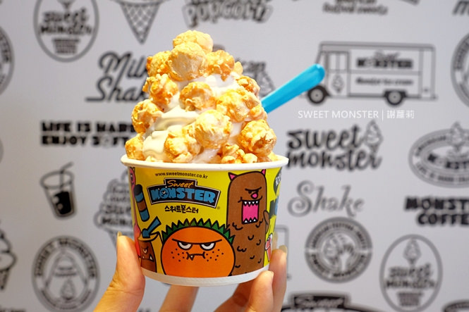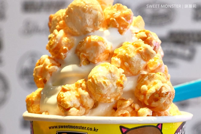 SWEET MONSTER 的特色就是這些擁有各種顏色的爆米花,還有強調純度高達75%的牛奶冰淇淋,如果是韓國吃貨,應該對這個品牌不算陌生。