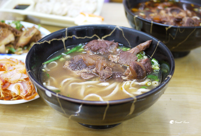 【紅燒半筋半肉牛肉麵】湯頭一樣非常濃郁,但辣度不高,屬於微辣的紅燒湯,吃起來還滿舒服的,如果喜歡較重口味的朋友,可自行加辣椒或辣油哦!
