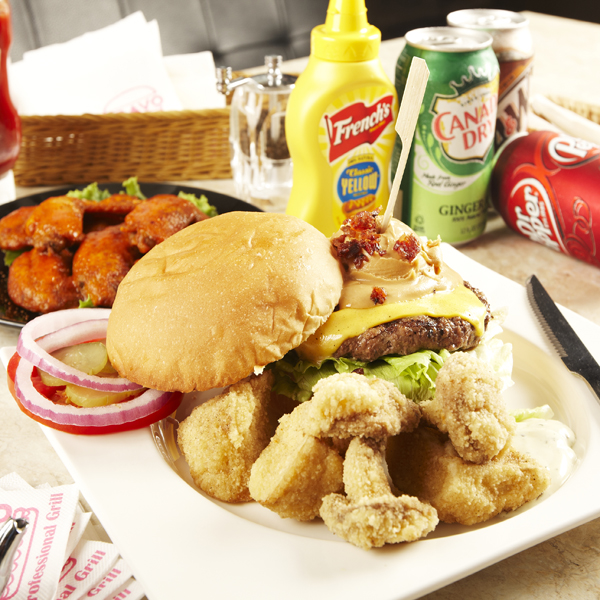 將鮮炸的薯餅鋪上香濃滑口的切達起司,在搭配上現烤牛肉餅,另外在淋上起司醬,雙重起司創造出不同口感,在佐酸辣的特調莎莎醬,瞬間帶出墨西哥辣椒的迷人香氣。配餐可選炸野菇、脆薯、炸切塊薯角或是薯泥。