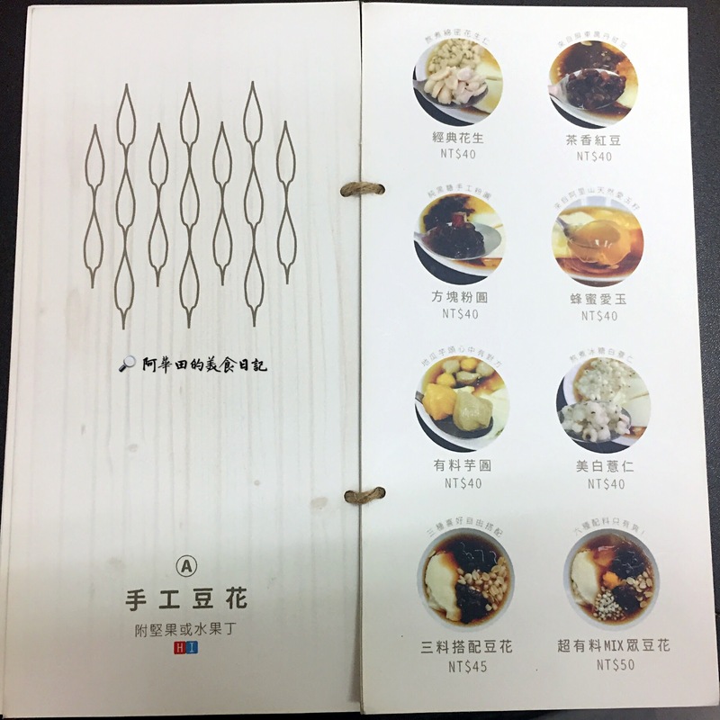 果核豆花鄉跟一般的豆花店不太一樣,他有兩種套餐搭配,可以當作早午餐也可以當作下午茶,這點我覺得不錯,價格更是親民,百元有找呢!平常在家裡都吃媽媽做的豆花,比較傳統古早味的薑汁豆花,但都沒有搭配用料,而果核豆花鄉的用料非常實在,每日現做的豆花及配料,吃得安心又健康