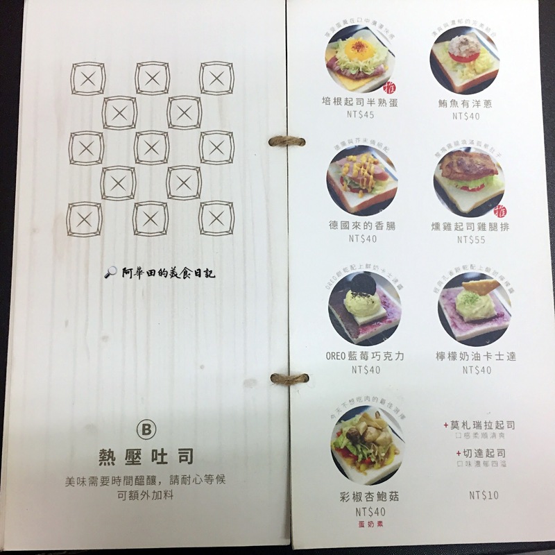 原本是想點兩個鹹的熱壓吐司,最後決定都試試看,裡頭居然有孔雀餅乾,整體是微酸的口感,帶點檸檬的清香,裡頭還有藍莓醬,原本應該是用在蛋糕上的,沒想到用在熱壓吐司上,又有另一種感覺,還不錯。