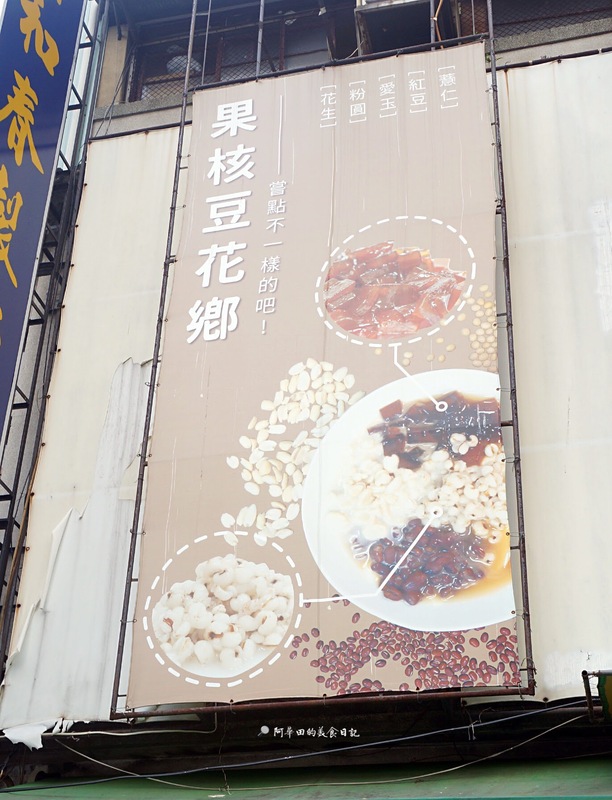 裡頭的配料有花生、薏仁、茶香紅豆、方塊粉圓、有料芋園、蜂蜜愛玉,六種滿滿的配料,真的是佛心來的,方塊粉圓有點像粉粿,口感是Q彈的,淡淡的黑糖香,整碗吃完非常有飽足感。