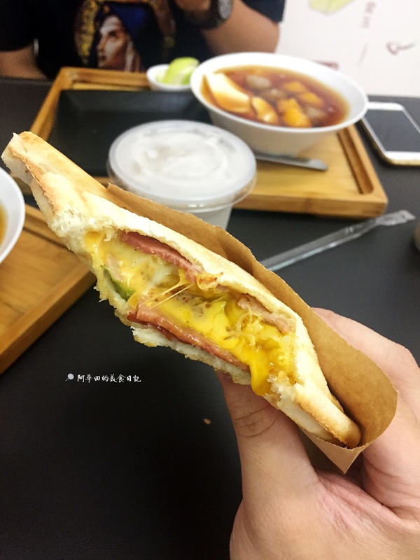 ▲有料芋圓+培根起司半熟蛋熱壓吐司+紅茶拿鐵