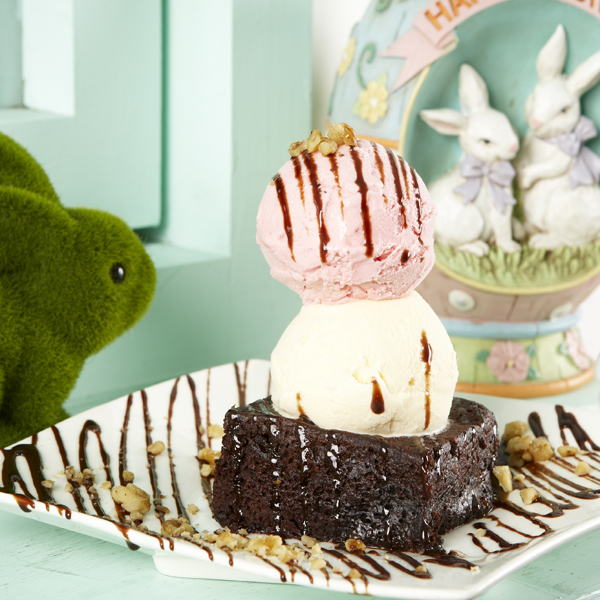 「雙色熔岩布朗尼」NT.160元/店家自製的苦甜風味的布朗尼,烤至略為溫熱順口,加上任選不同口味的冰淇淋,大飽口福之後,也能品嚐下午茶點的好氛圍。