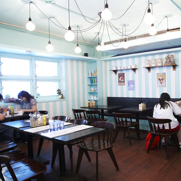 愜意地踏進店裡,就靜身謐巷之中,眾多兔子紛紛印入眼簾,從店內外看色澤繽紛,帶有少女情懷的鄉村夢幻,看見牆上老闆兼主廚─方米粉的關於兔子的系列插畫作,仔細品味店內擺置,樂團海報、樂手照片或是寄賣獨立唱片,都能瞧見與搖滾樂相結合,是風格混搭、個性十足的美式餐廳。
