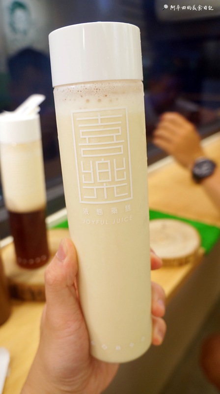 在台灣,手搖店、果汁店到處都是,但你一定沒看過用蔬果與藥膳調和的液態飲品,由內而外都充滿著對中醫的熱情,在中醫的概念中,五色(青、赤、黃、白、黑)對應著「五行」及「五臟」,而食物與藥品中的四氣(升、浮、降、沈)、五味(酸、苦、甘、辛、鹹)等性質都關乎他們對人體的效益。深深佩服創辦人的品牌故事與經營理念,在喜樂,除了喝的安心之外,你更能深刻體會到健康的生存之道。當天發現店裡有一位爺爺,他是店內的常客,每次來都點同一款,原來是他身體變得健康之外,氣色也變得很好。