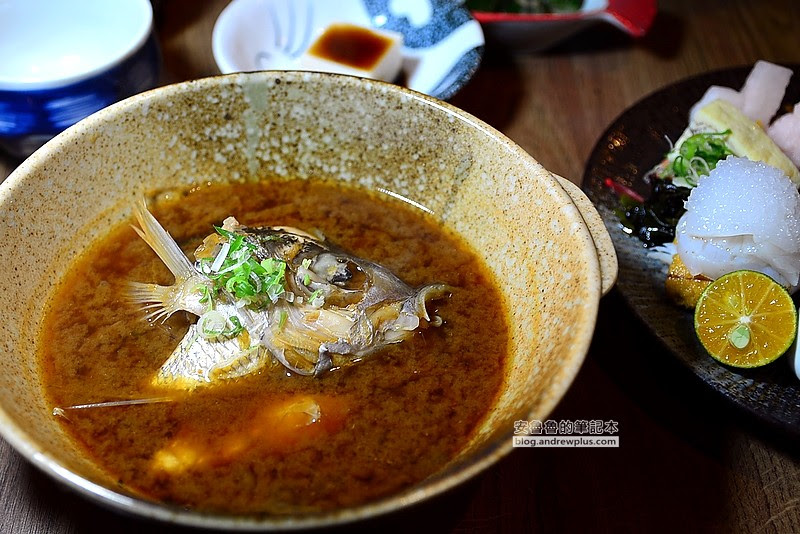 京都赤味增搭配青雞魚,魚肉超滑嫩,湯頭鹹中帶有甘甜,味增湯的顏色看起來比較深,味道也比平常喝的淺黃色味增要重些