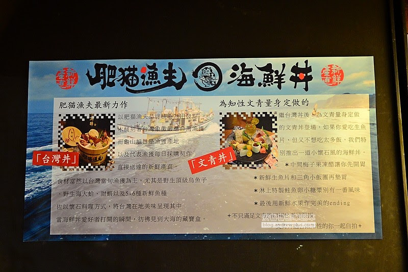 ▼店家也很有創意的針對不同客人的需求設計了具有特色的海鮮丼飯-像是今天要品嚐的文青丼,就是針對不想吃太多飯,但是很愛吃生魚片的客人所特製