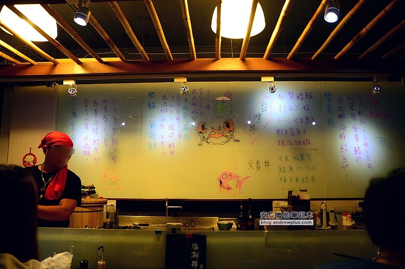 ▼櫃台上的白板寫著各種丼飯的材料,部分的丼飯由於使用的是台灣旬鮮食材會依每天進貨而變化,換句話說每次來都可能吃到不一樣的食材