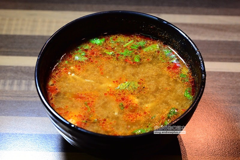 這一碗則是霸王魷魚飯所附的酸辣湯,也超好喝的酸味重卻不嗆,雖然辣度不如綠咖哩但辣的剛剛好