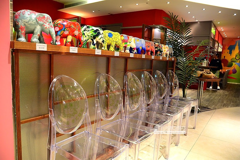 ▼店前有一整排超可愛的彩繪大象,讓經過的人一看到就知道這裡賣的是泰式料理,店門口的座椅超特別,是透明的說!