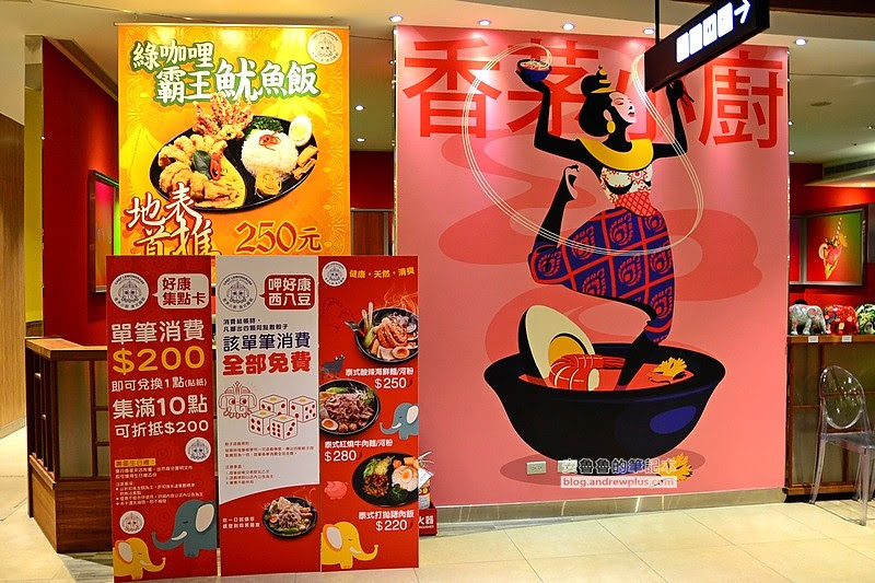安魯魯的筆記最近的天氣忽冷忽熱,穿衣服麻煩,怕太熱又怕忽然變天冷啾啾,那不然來吃點酸辣的泰國菜出出汗好了!來到了微風松高店的B2美食街,一走下電扶梯就看到香茅小廚的酸辣泰式料理海報,還有新產品綠咖哩霸王魷魚飯,看著海報就開始流口水了,那今天就來挑戰酸辣讓舌頭也像天氣一樣洗洗三溫暖吧!