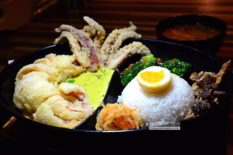 安魯魯小評霸王魷魚搭配著綠咖哩一起吃,雖然瘋狂的飆汗,但仍忍不住的想吃光他。食材品質好,味道濃郁,酸、辣、鹹、甜搭配得很均衡(甲)