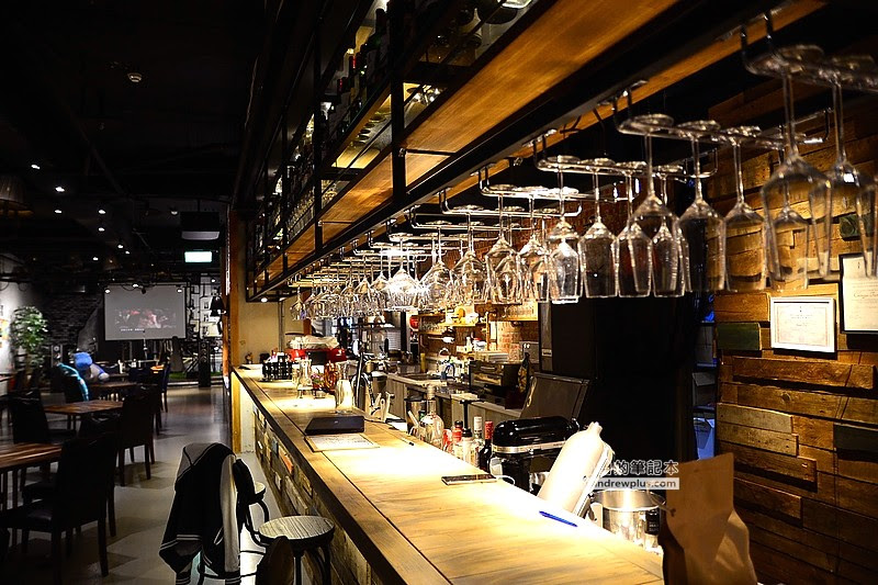 ▼經過了櫃檯再往裡面走一點,這裡有個更大的用餐空間!整間店大到有點嚇人了~原木觸感的吧台上面掛了一整排的紅酒杯,檯面上乾淨整齊,這質感與精緻感,如果我是附近的上班族一定會每天來報到!