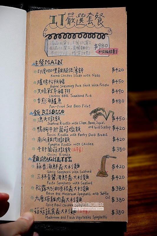 ▼坐下後親切的服務人員就送上了飲用水;今天我們點了兩份的IT嚴選套餐980元/份;可以湯品4選1、主餐13選1 、飲品任選,以上都是菜單上任選,而套餐麵包、本日沙拉、精選甜點則由店家搭配選項,而且只要點套餐就不另收服務費。以下餐點標示的是單點的價格唷!