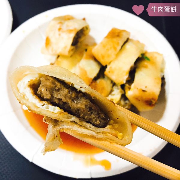 牛肉蛋餅感覺真的很少遇到,是像麥當勞那樣的漢堡肉排,不過感覺肉粒更大一點點。