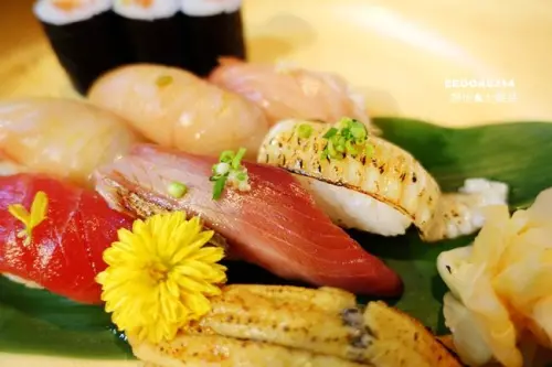 擺盤超精緻,魚貨都會依造當天進貨有所不同,今天所供應的是細卷/紅魽/比目魚/鮭魚/星鰻/午仔