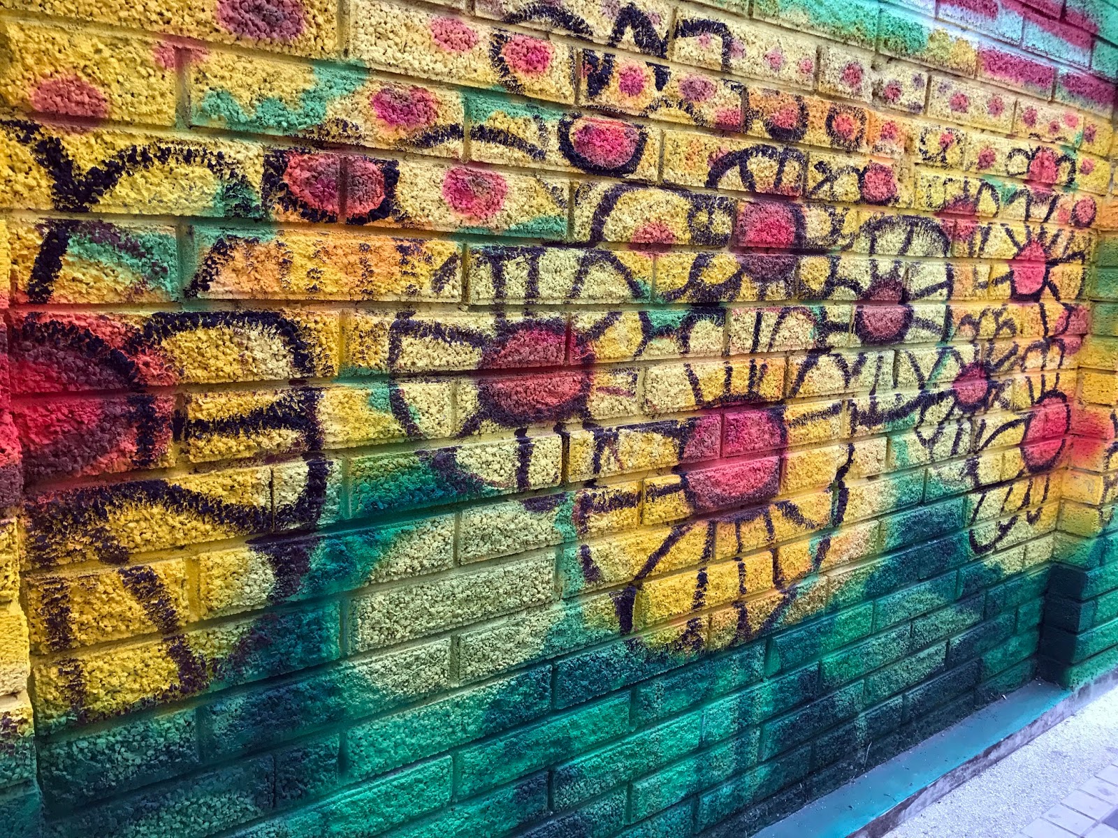 向日葵,鬱金香以及磚瓦古厝的彩繪牆