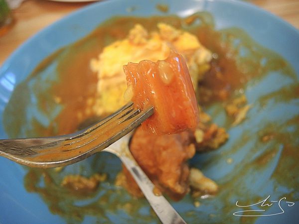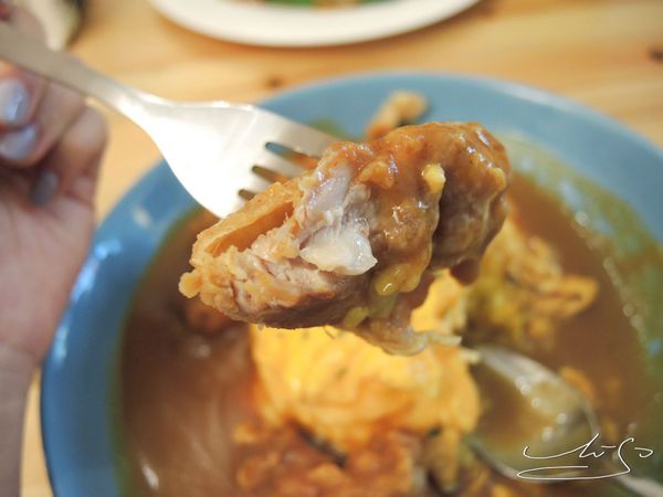 吃起來口感氣味一瞬間我腦袋瓜浮出肉粽 !? 飯粒是屬於粒粒分明的那種 搭著咖哩吃很好吃