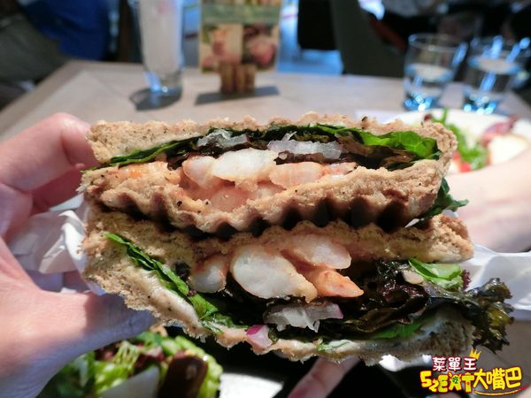 ▼彈牙的鮮蝦加上海鮮沙拉醬,鮮度破表,感覺痛風都要發作了~哈哈,加上大量的生菜配上海鮮醬,從第一口到最後都不感覺膩。