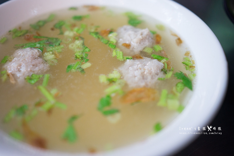 鬆軟的丸子像獅子頭的口感,而非像貢丸那種Q彈,肉汁跟肉甜味充沛,是好吃的手工丸。