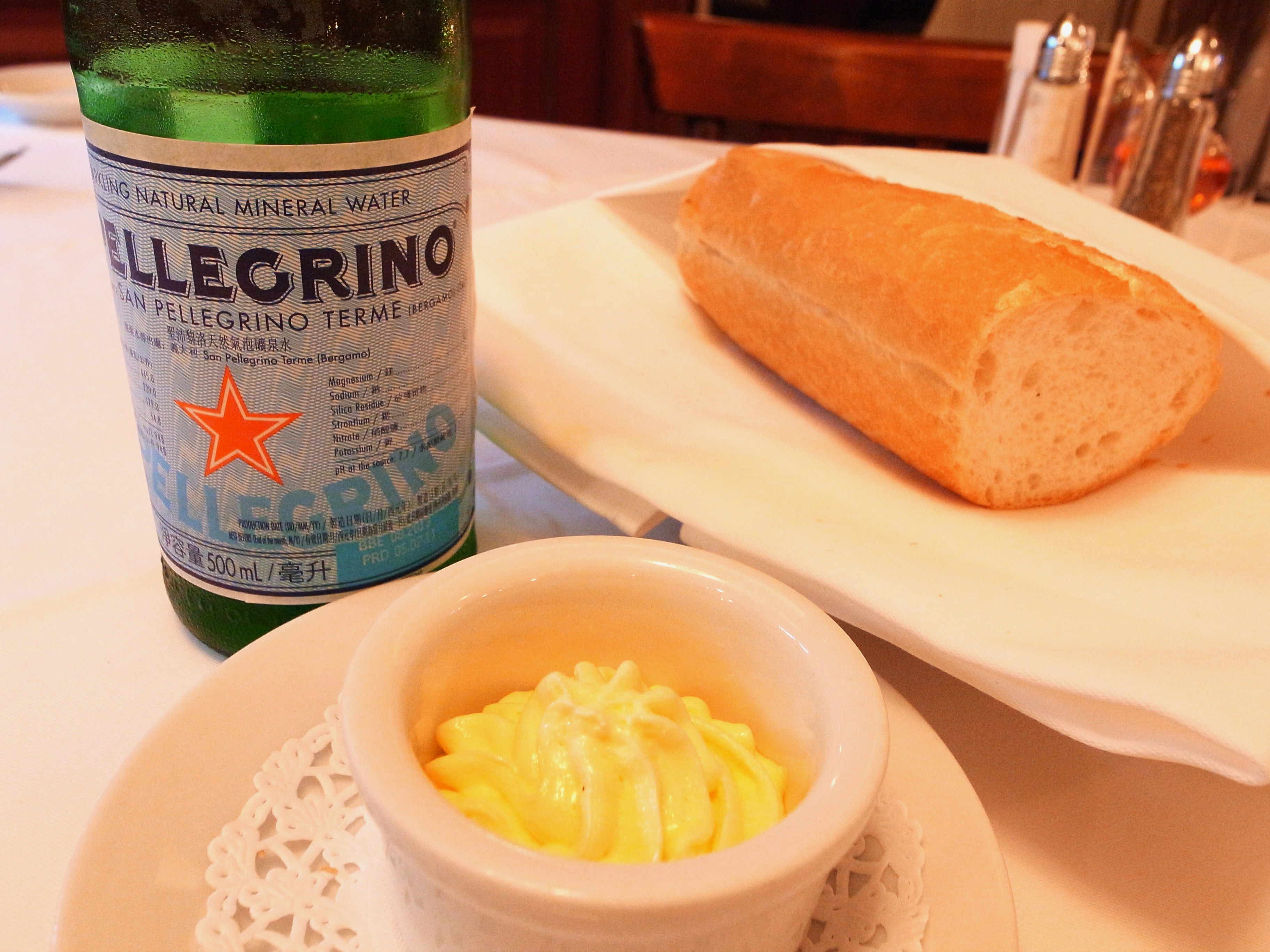 沒多久麵包與礦泉水先上桌,前者是免費供應的所以可無限續,