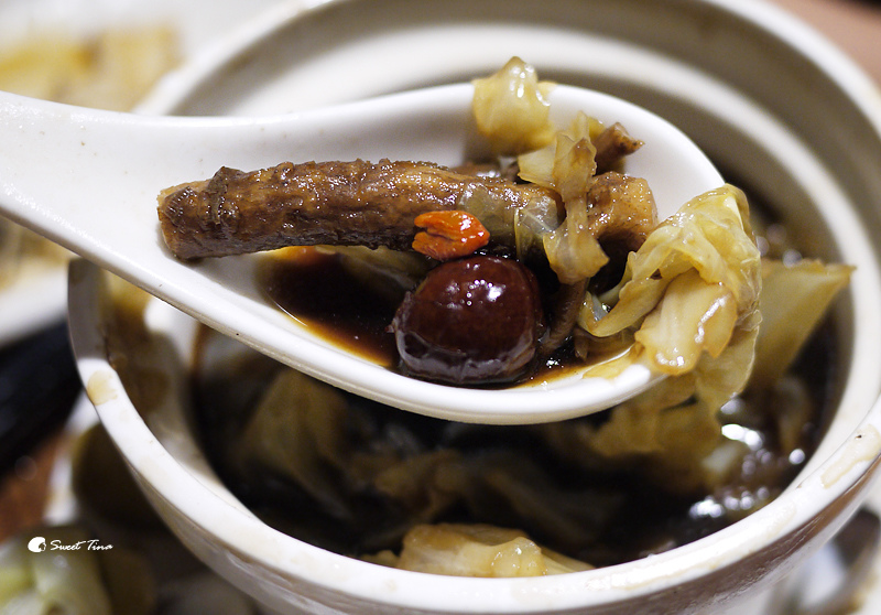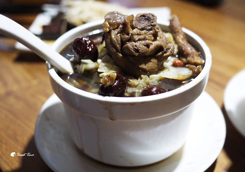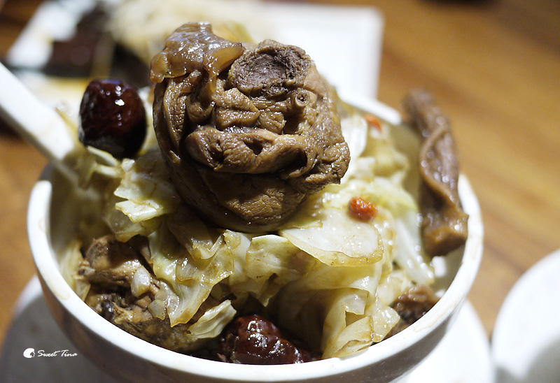 何首烏燉雞 - 雞湯霸氣的滿到頂了,裡頭採用了何首烏及中藥材,還加入了滿滿的高麗菜,所以喝起來是甘甜的,不會覺得有很重的中藥味。