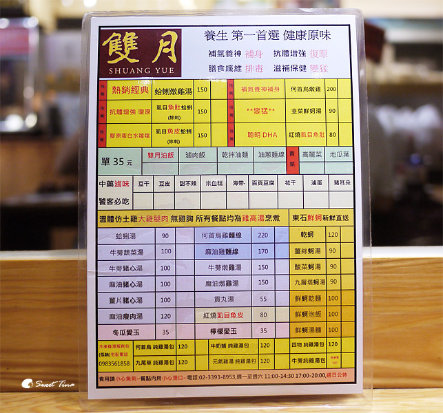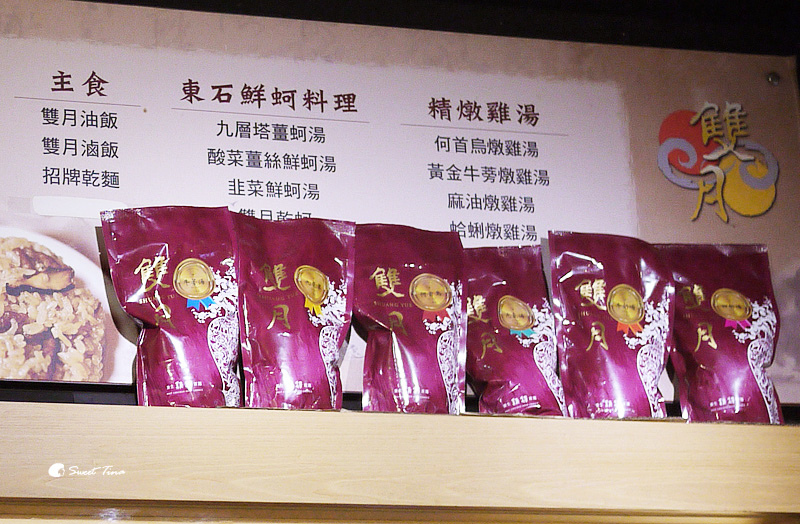 雙月食品社提供的餐點有多樣湯品、油飯、滷肉飯、麵類、滷味、愛玉飲品,湯品還在一旁標註了可以幫助調理什麼,缺什麼點它就對了XD~