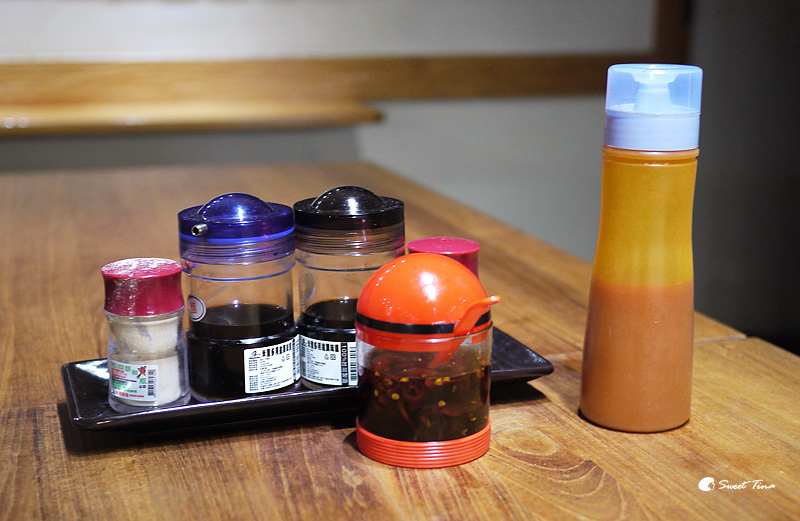 這裡提供了多樣調味,包括油飯的醬料、醬油、楜椒、辣椒醬油...等。