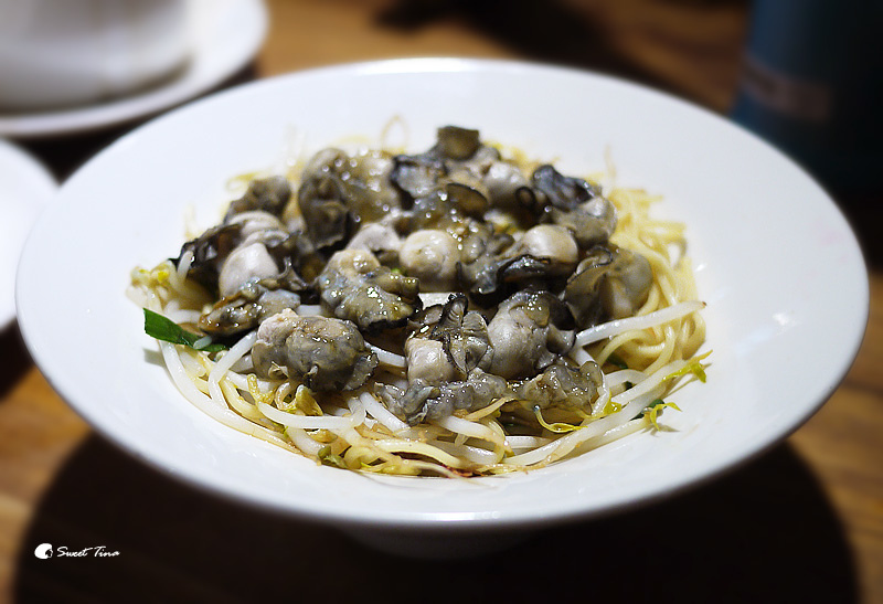 鮮蚵乾麵 - 油麵上大氣的舖滿了蚵仔,蚵仔的口感還滿鮮的,麵的份量也滿多的,吃完會很有飽足感。