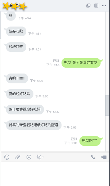 而且還拿去誘惑減肥中的同事,哈哈!!!附上他傳給我的試吃心得~~~(整個人超壞心,一直破壞他的減肥計畫)