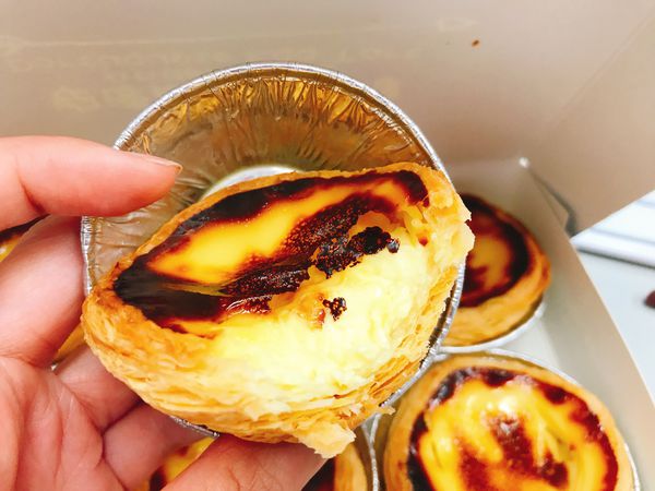 他就是很好吃的葡式蛋塔,內餡回烤過後蛋香奶濃,滑順的口感搭配上非常酥脆的塔皮