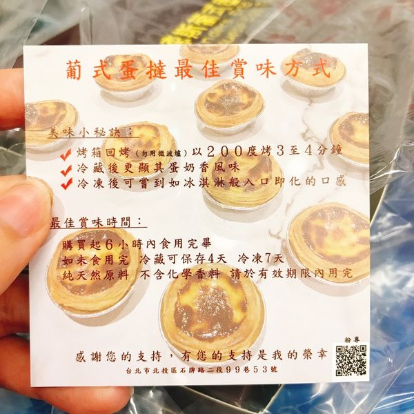 買盒裝蛋塔店員有在袋子裡附上這個賞味建議,我覺得非常貼心