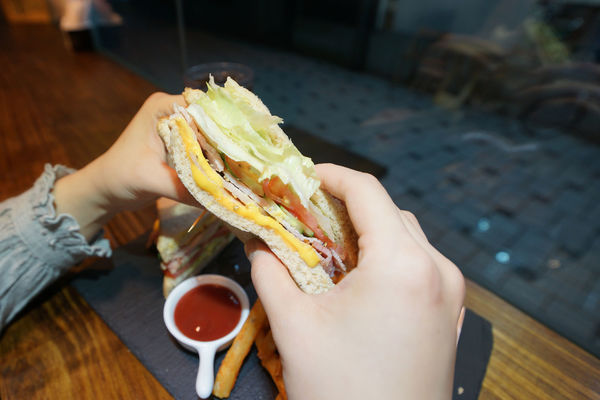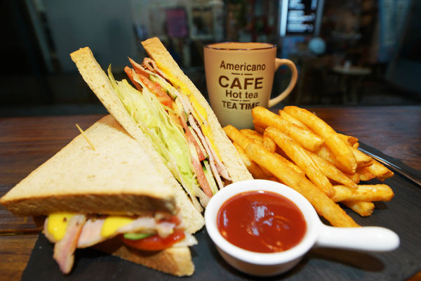 焙燒里肌三明治90+70=160,話說這份量與價格真的佛心,使用全麥吐司夾大量蔬菜類,有小黃瓜、生菜、蕃茄、洋蔥,重頭戲豬里肌肉、起司,三明治內餡料多實在,Side Dish炸薯條是有調味過的那種,灑上黑胡椒,讓薯條直接吃就很夠味,沾番茄醬吃鹹中帶甜,也是不錯的選擇。