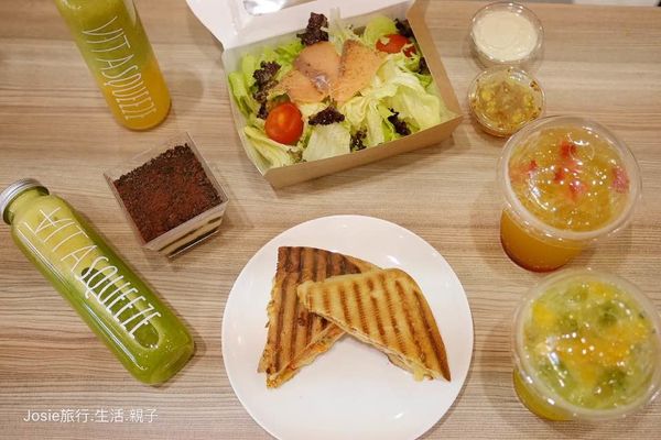 包含了: 100%慢磨新鮮果汁、水果氣泡飲、果昔冰沙、咖啡茶飲、三明治、帕尼尼....等等。