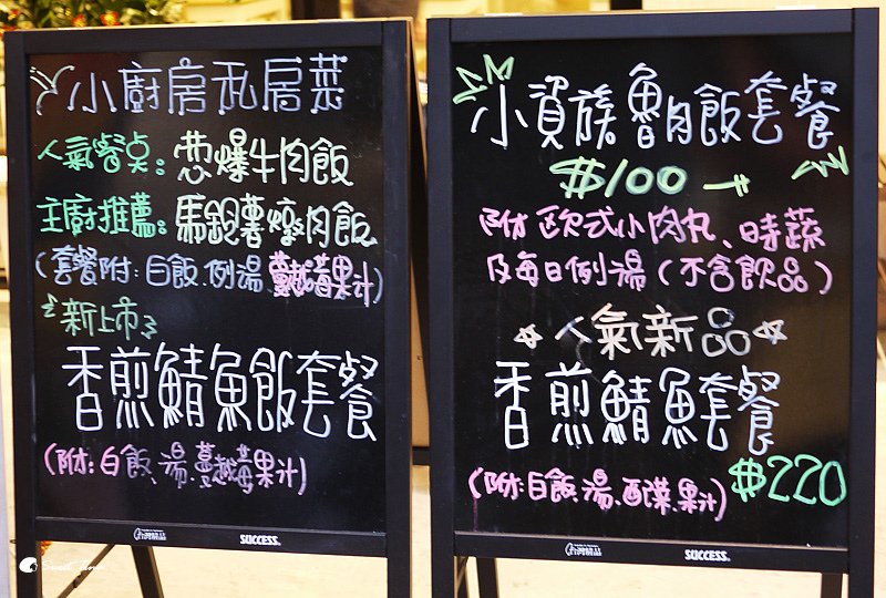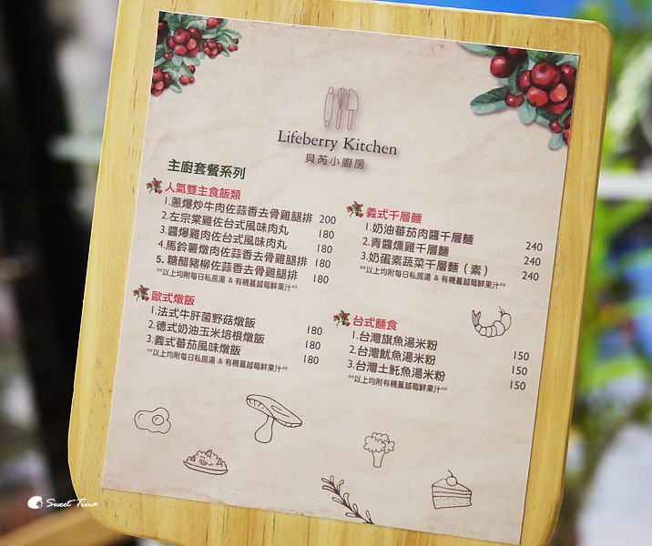 來看看這兒提供了哪些餐點吧,套餐類提供的有雙主食飯類、燉飯、千層麵、台式麵食。