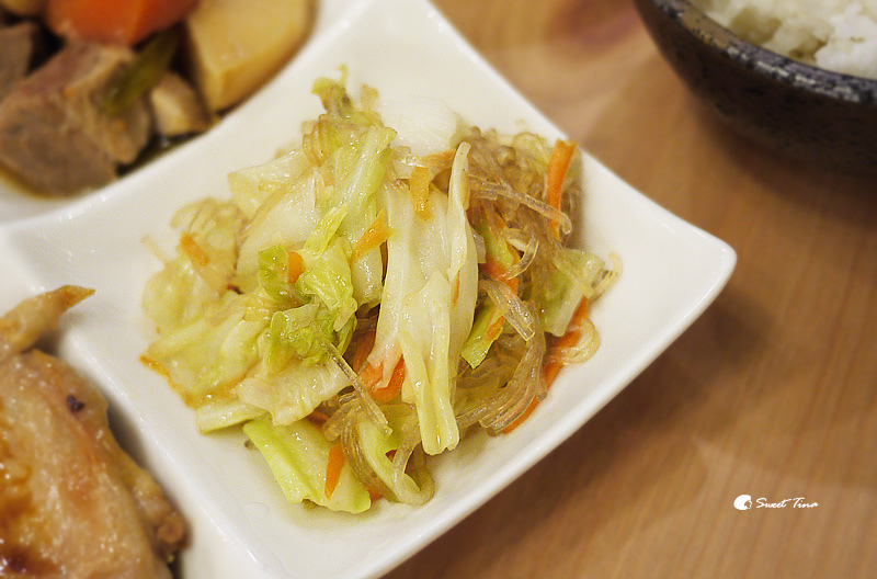 高麗菜加上冬粉後,多了點口感及飽足感。