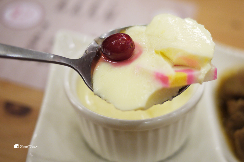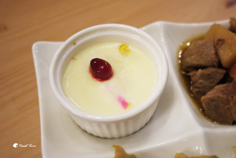 看似平凡的蒸蛋,但搭上一顆蔓越莓後,口感上多了點衝擊,還滿不錯的搭配呢。