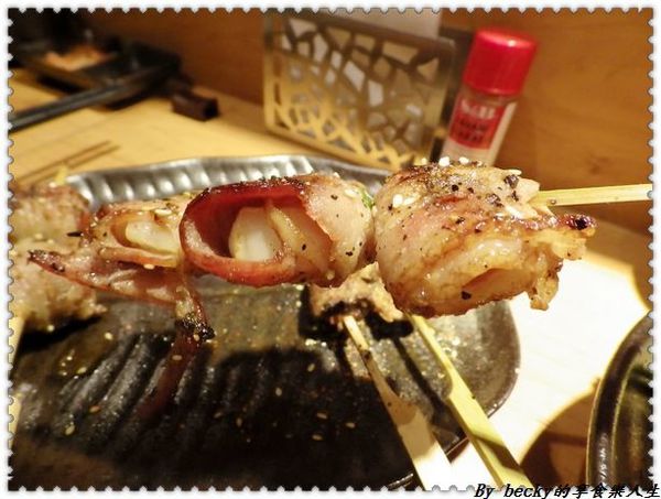 蕃茄牛肉串、培根干貝串、胗心雞串~