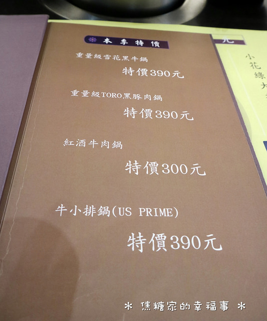 菜單裡會有本季的特價鍋品