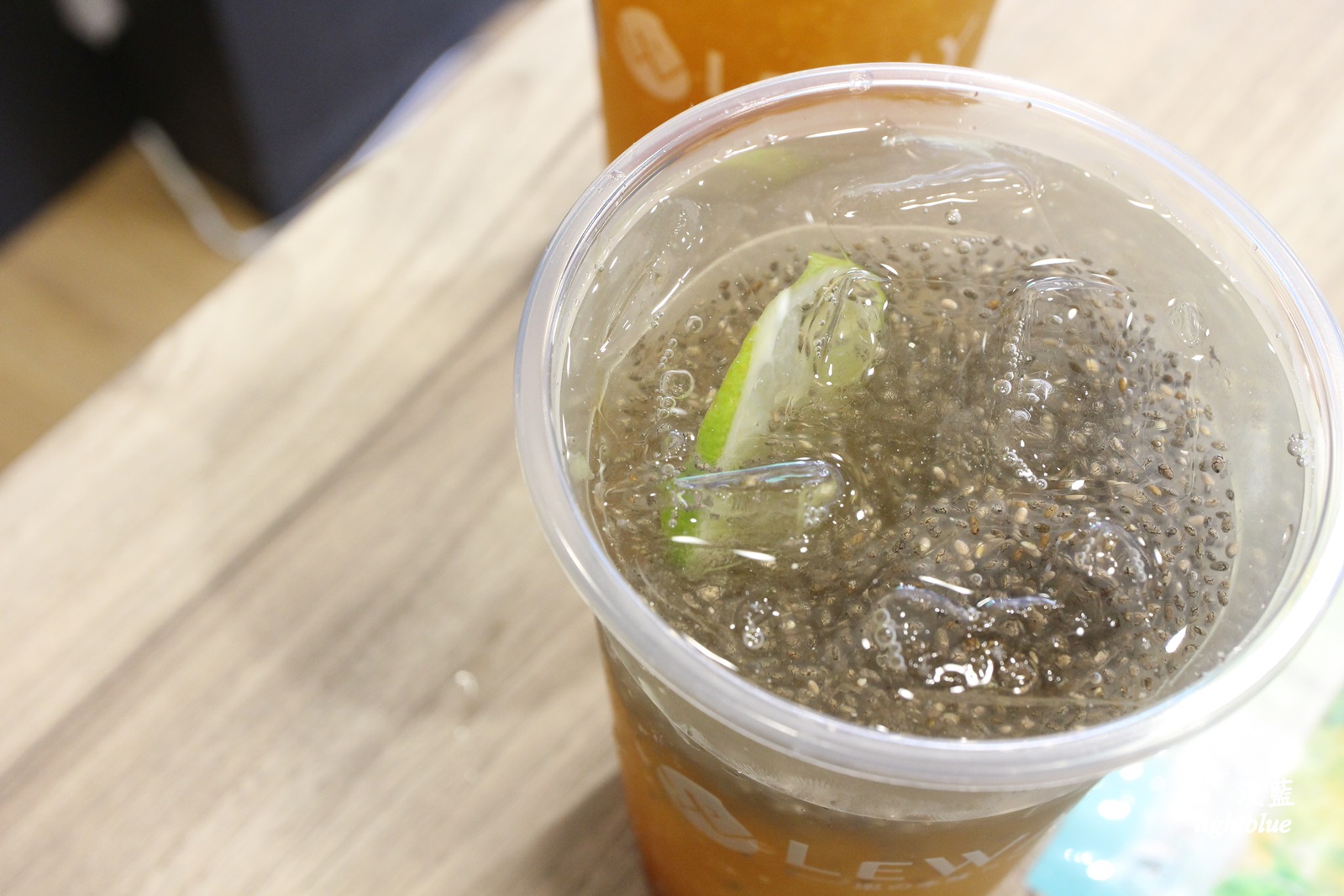 這是另一款新品「檸檬愛玉奇亞籽」,有很漂亮的漸層,最上層的是愛玉跟檸檬,然後是奇亞籽和酸甜果汁