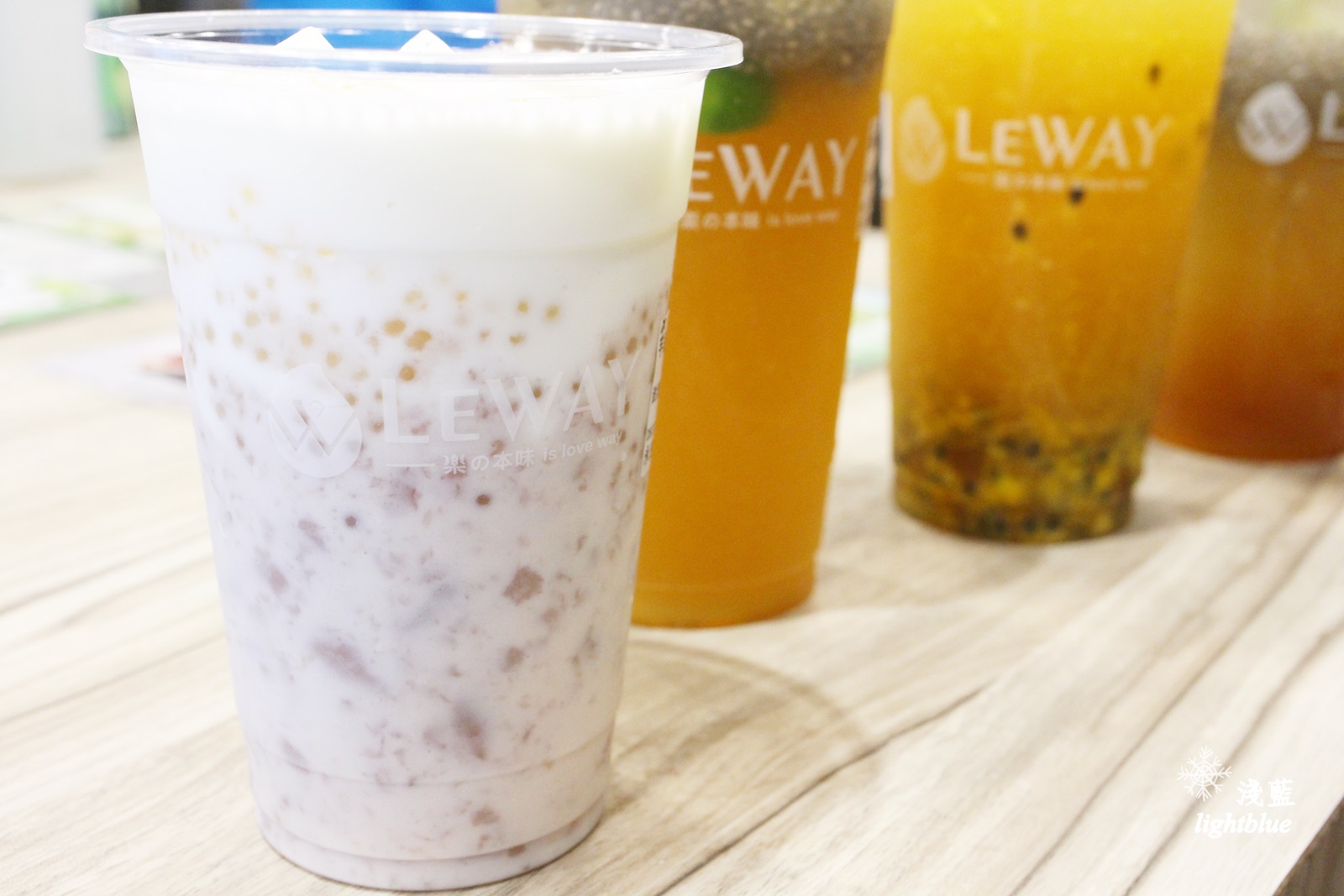 這次要跟大家分享六款Leway的飲料:檸檬愛玉奇亞籽、鮮桔奇亞籽、QQ水果茶、柳橙綠茶、芋頭牛奶西米露、珍珠紅茶拿鐵