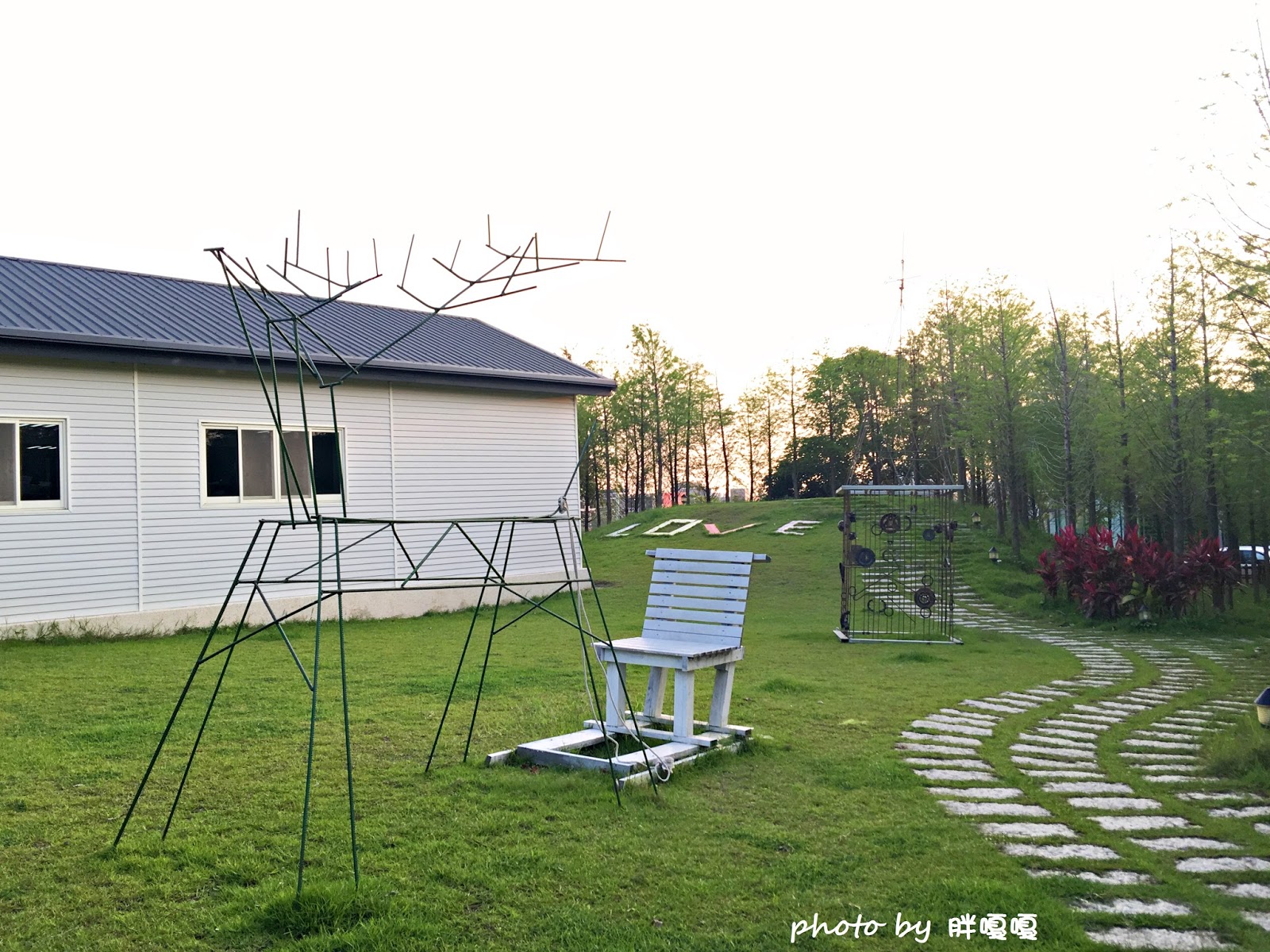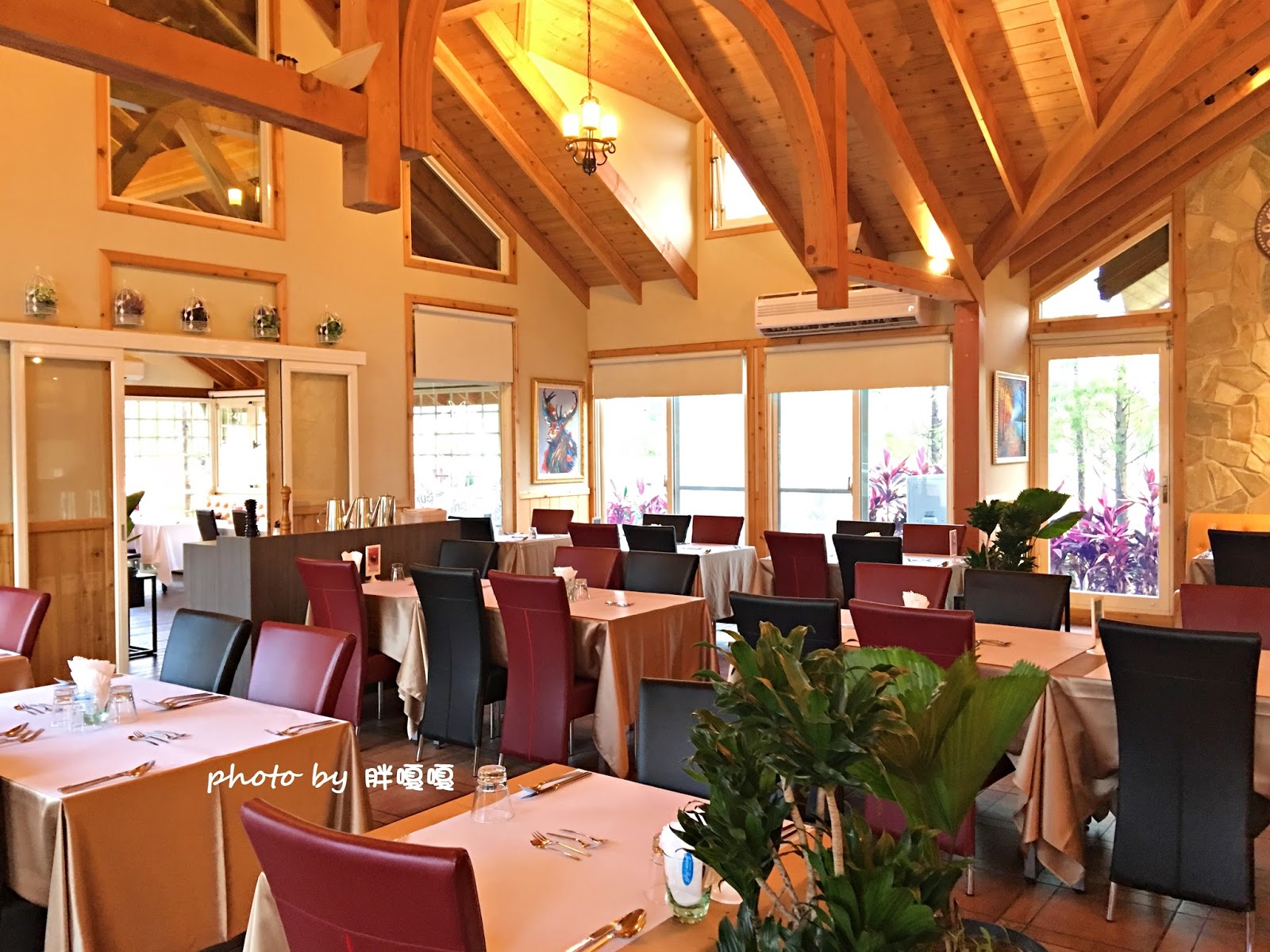 看見這餐廳外觀一隅和落雨松甚是絕配