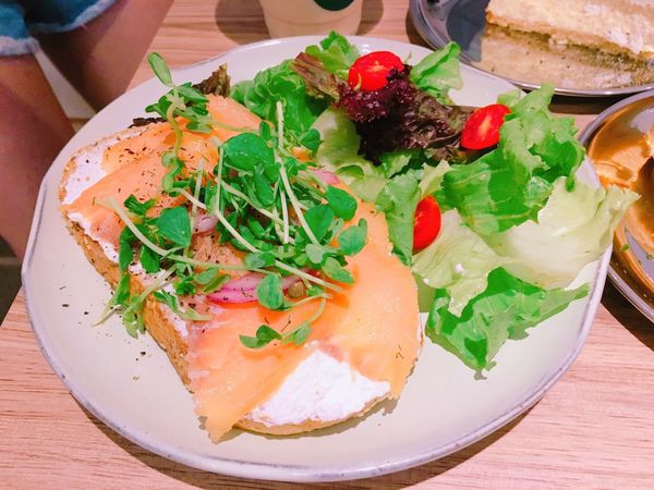 燻鮭魚給的好大一片~~~ 配上起司與烤麵包