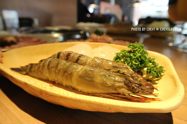 大草蝦也被烤得紅通通的,肉質Q彈不卡牙。