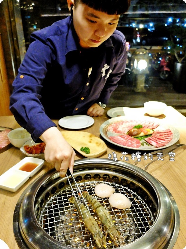 海鮮的部分服務人員會來幫忙~熟練的幫大家烤到最佳的熟度,草蝦會貼心的幫忙去殼~干貝也是烤到恰到好處的啦!可以沾一點雲火特製的檸檬沾醬增加香氣~好吃到姐都要站起來轉圈了啦!