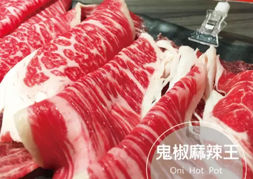 鬼椒吃到飽的價位分為兩種,以大人為例,NTD 579跟 NTD 499的差別在於多了安格斯黑牛、特級霜降牛、麻辣牛筋、三點蟹、草蝦、小尖捲、腰子貝。